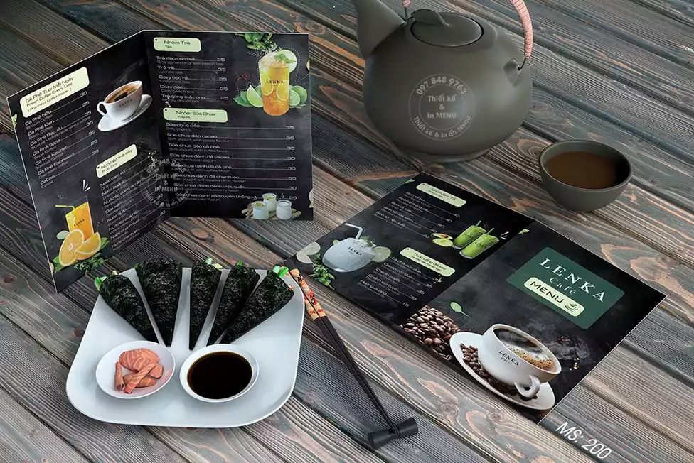 Chuyên Thiết kế & in menu nhà hàng, menu quán cafe, menu trà sữa, sapa, bar …đẹp & chuyên nghiệp, in sắc nét, bố cục thiết kế đẹp sáng tạo. CAKI nhận làm Menu mọi chất liệu: Menu bìa da, Menu nhựa, cartone, Menu formex, Menu gỗ, mica… Chúng tôi Làm menu theo phong cách của riêng bạn một cách nhanh chóng, với mẫu menu tuyệt đẹp, được thiết kế sáng tạo. Duyệt qua lựa chọn của chúng tôi về các mẫu bên dưới, Bạn nên chọn một mẫu phù hợp với tầm nhìn của bạn. Sau đó CAKI sẽ tùy chỉnh nó để phù hợp với thương hiệu và các thực đơn đồ ăn thức uống của bạn.